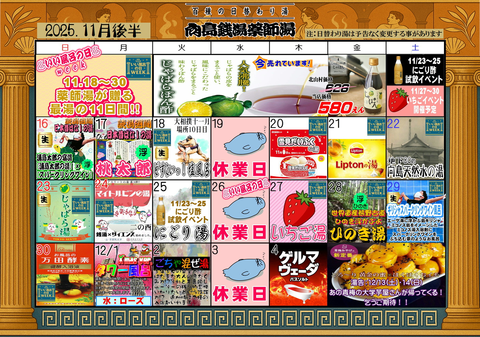 2025年11月 日替わり湯